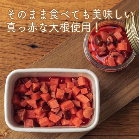 ★そのまま食べても美味しい真っ赤な大根で作ったから、漬けダレもピンク色